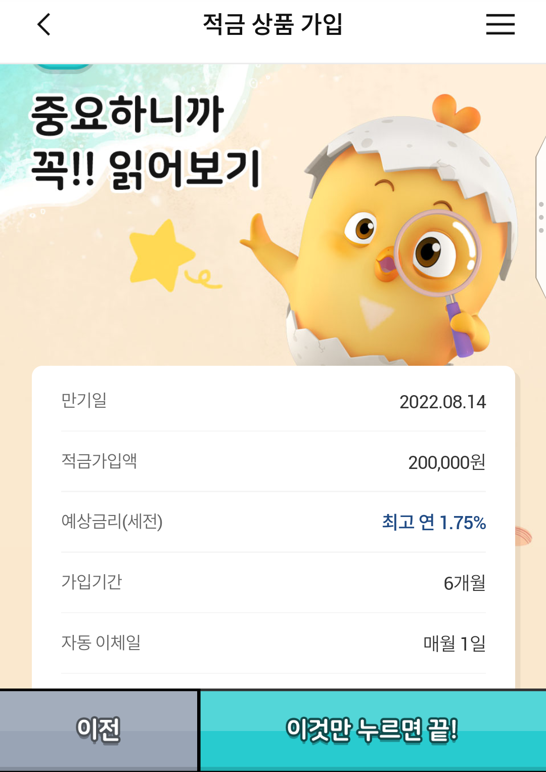 클릭 몇 번으로 적금 하나 가입 완료!!