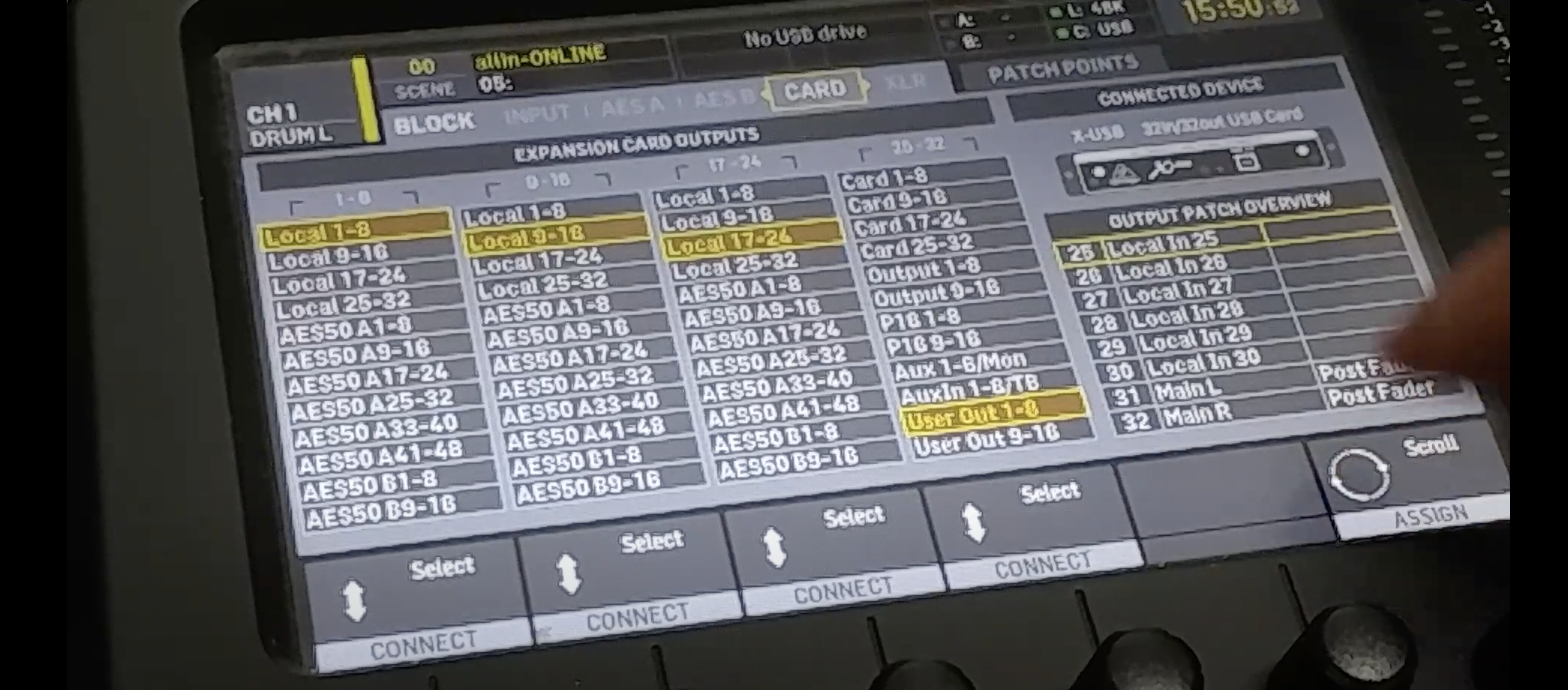 Out 7-8은 local Out 15-16으로 설정해서 main out을 할당한다.