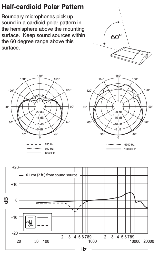 (PZM마이크는 해당 마이크의 이름을 뜻하는 것이고 마이크의 종류를 뜻하는 말은 아님) - 저역 재생 능력은 크게 뛰어나지 않지만 고음 특성이 뛰어남