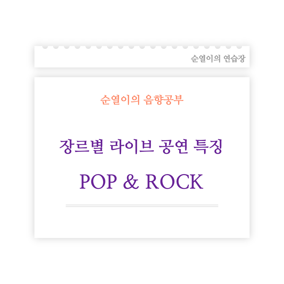 Pop, Rock 장르의 경우 일반적으로 악기의 구성들이 네츄럴한 어쿠스틱 악기들이 아닌 전자악기로 주로 이루어졌다. 전자악기는 개별 악기의 소리를 가공해서 재조합하는 (믹싱) 방식들을 사용하게 된다. 악기들의 마이킹은 주로 클로즈 마이킹 방식으로 하고, 전자악기들은 직접 신호를 콘솔로 전달하는 Direct In 위주로 구성된다.